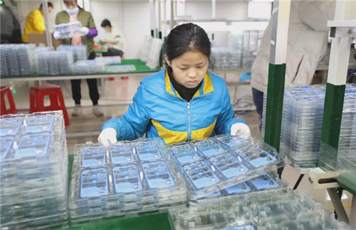 据介绍,今年年初六,蓝海米克公司逐步开工复产,如今已有600多名员工到位,全面进入火热的生产状态。精雕车间里灯火通明,机器自动化运作加工平板中框,一名员工同时管理十多台机器,时不时查看产品质量,现场秩序井然,一派生机盎然的景象。在落户河源国家高新区的短短几年时间里,蓝海米克拥有了充足稳定的订单,连年实现年产值大幅度增长,今年根据现有的发展势头,力争在产值再次翻番的基础上稳中求进实现年产值2亿元。